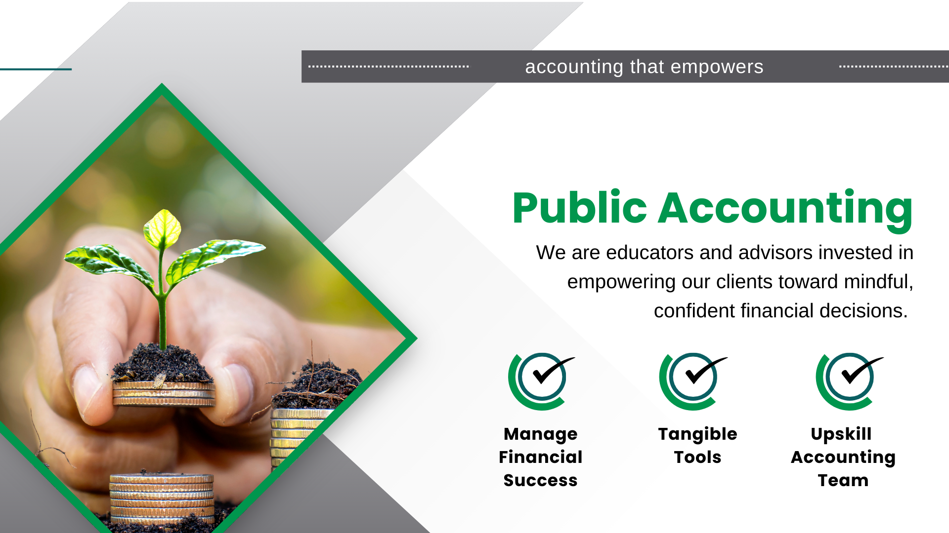 Advise business financial decision makers in utilizing new tools that will assist business owners to proactively run the business for growth and success.