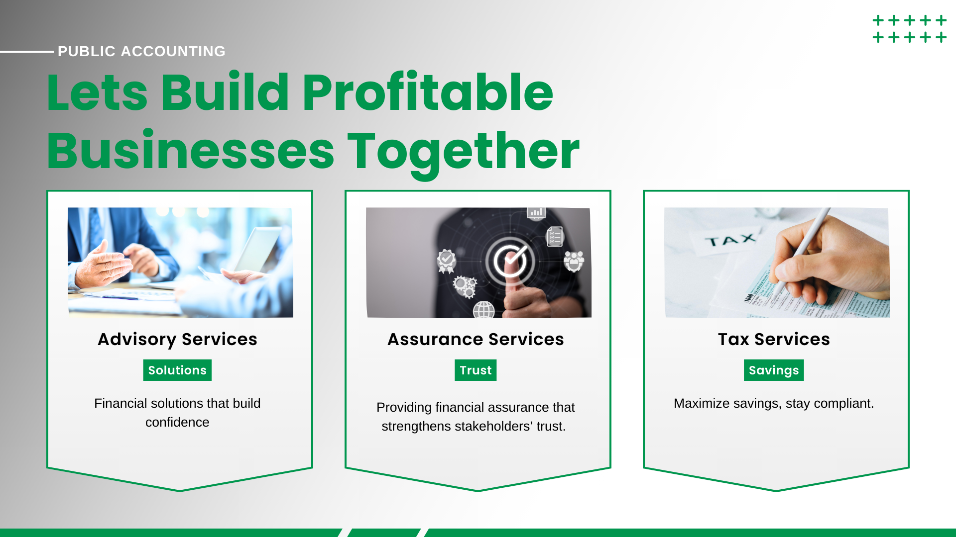 Our tailored services ensure that business leaders have the information they need to drive financial success. With a simplified approach we guide your decision-making to build sustainable growth and win in business.